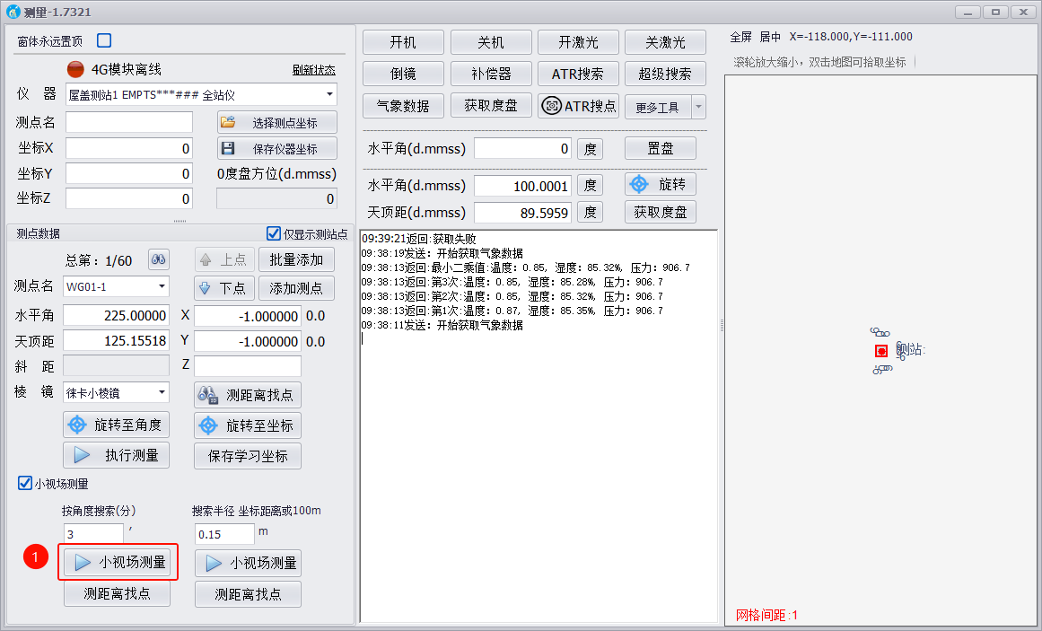 第二步:点击小视场测量,等待测量返回结果;