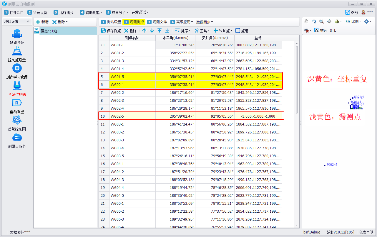 第四步:检查是否有遗漏测点坐标