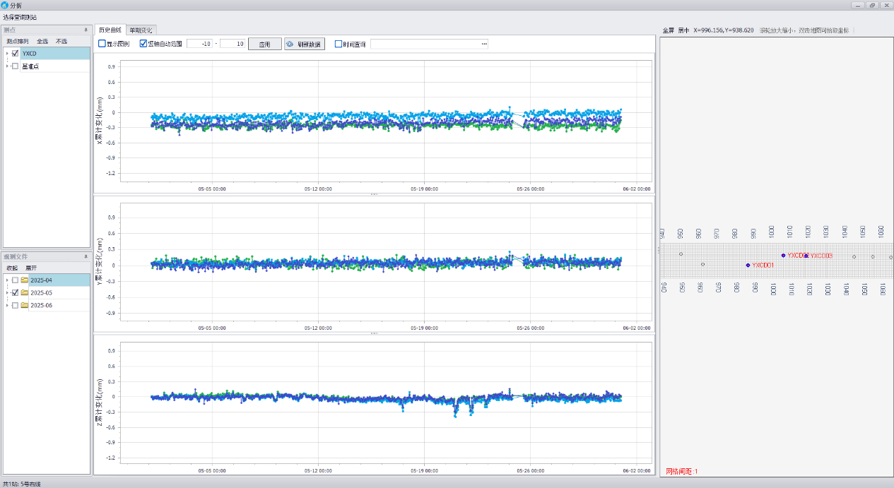 查询时间段的横向、纵向、竖向的位移变化曲线分析