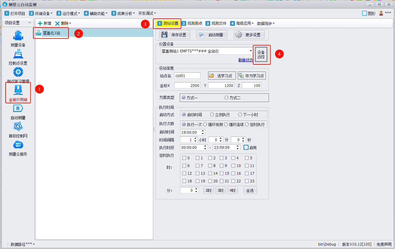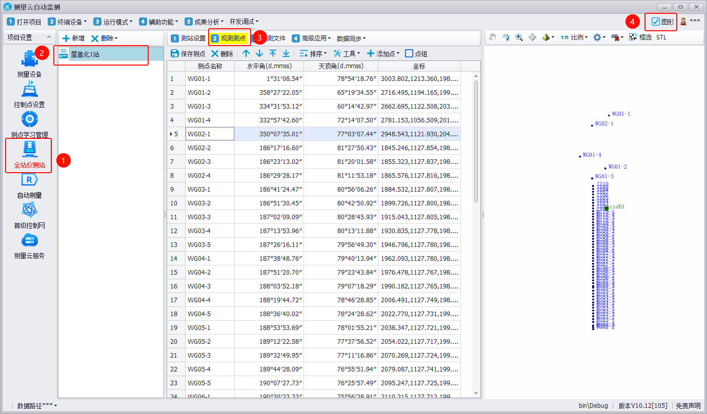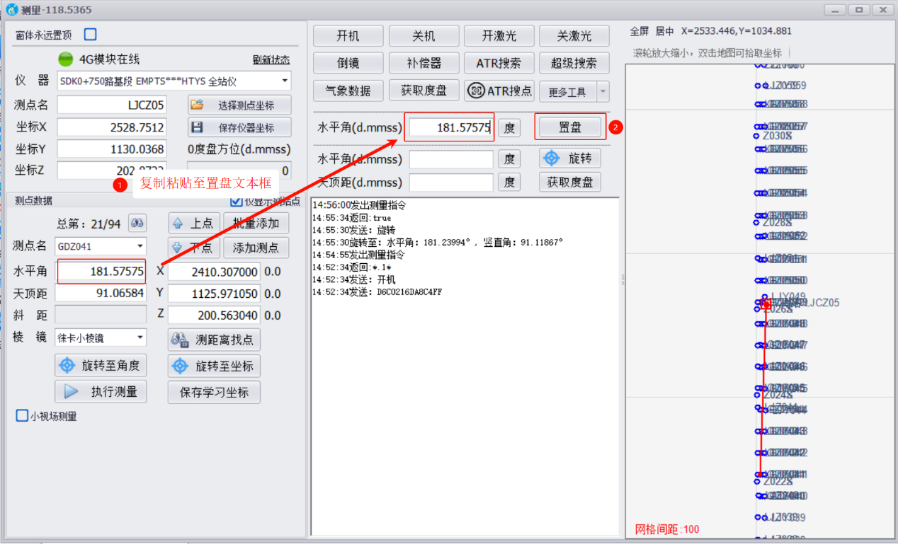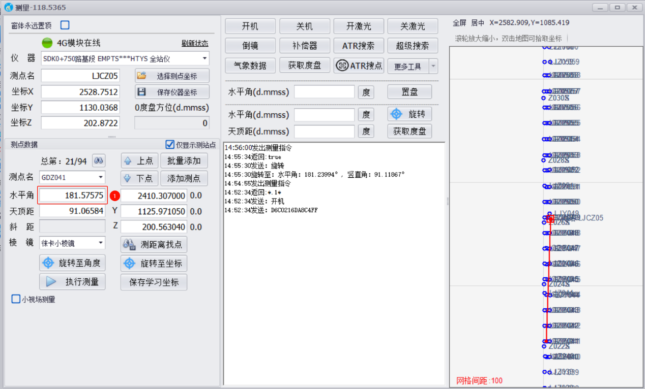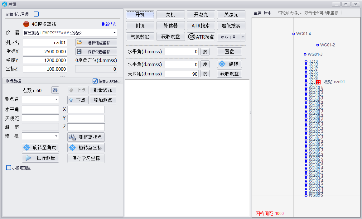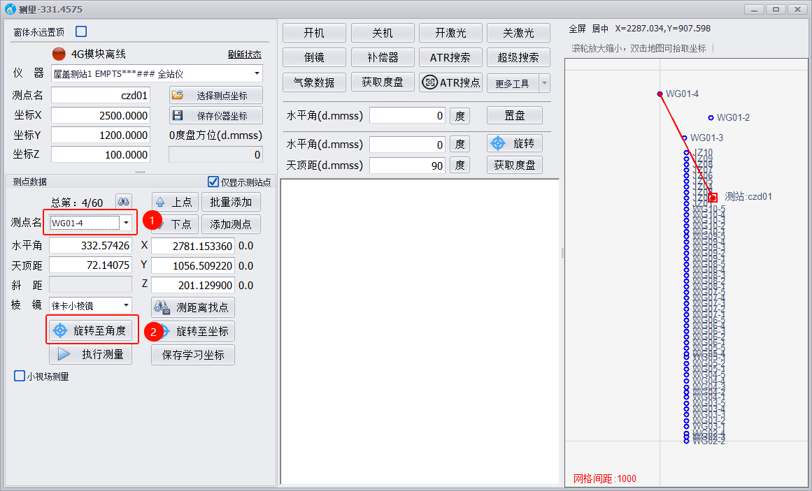 (1)旋转仪器瞄准1个测点,并测量一次检查测点有效;