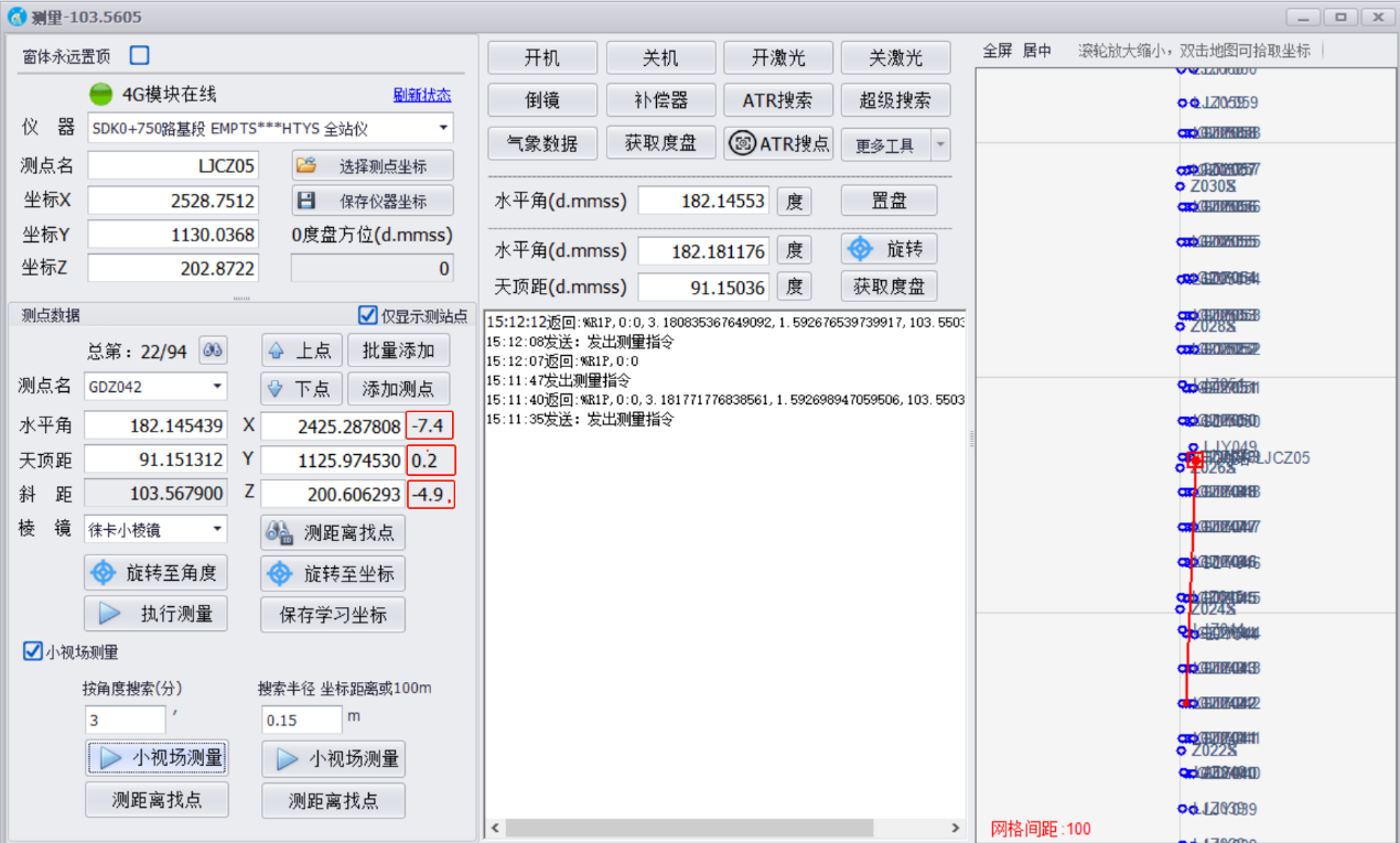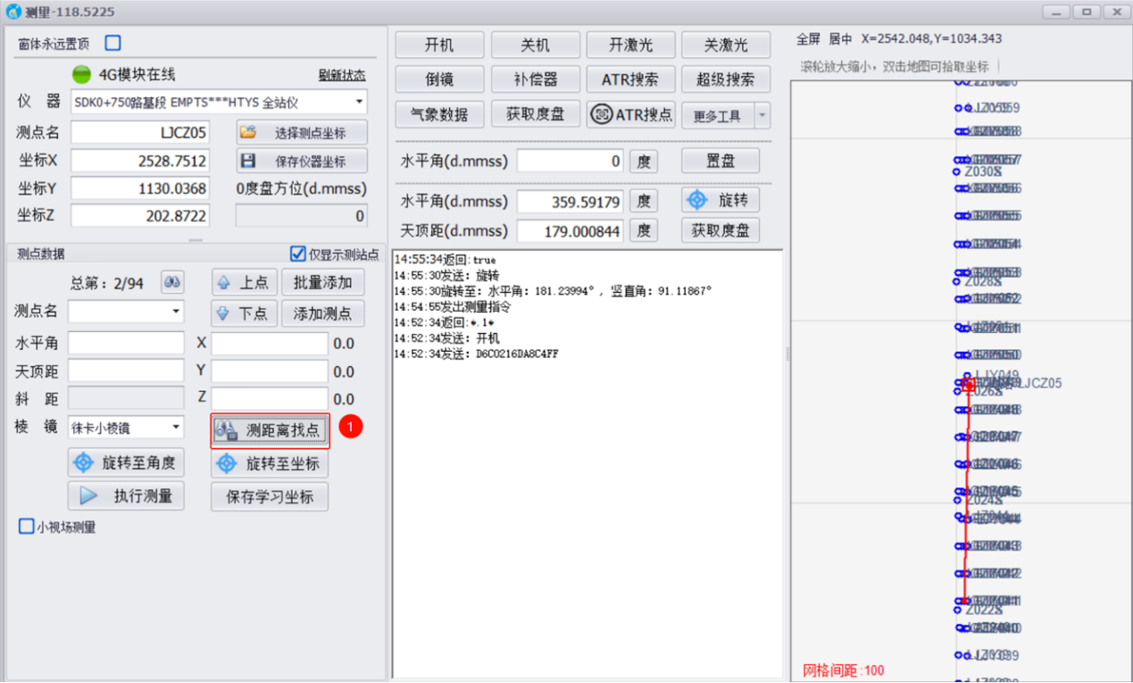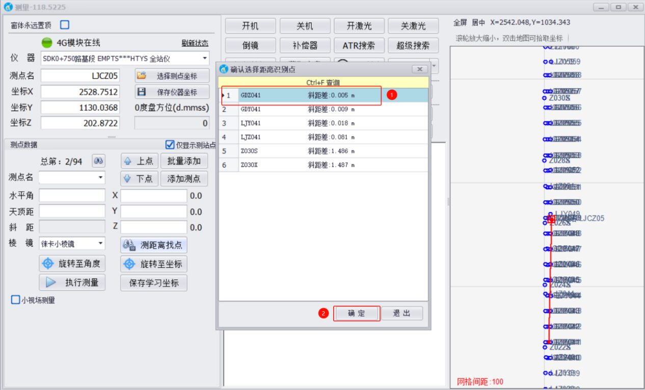 仪器测量坐标后,软件计算仪器到测点的距离,按斜距就近匹配到当前测点