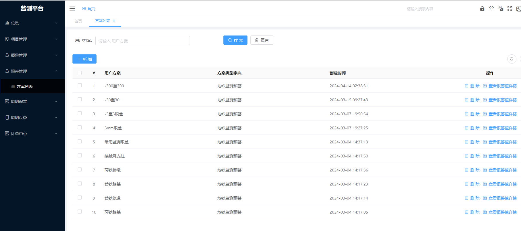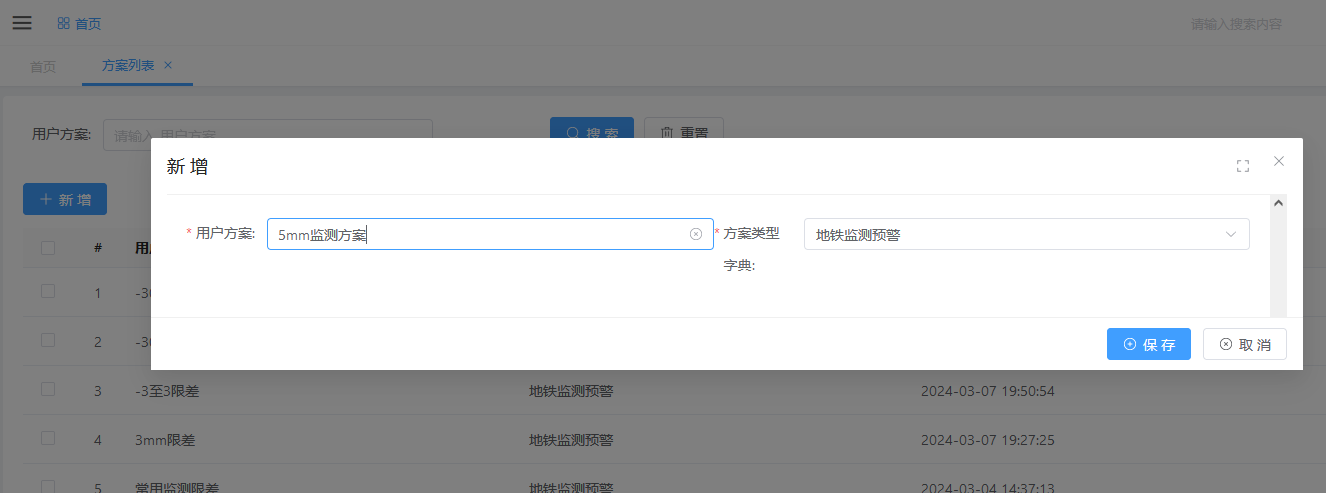 点击新增,选择方案类型字典,输入限差方案名称,点击保存。