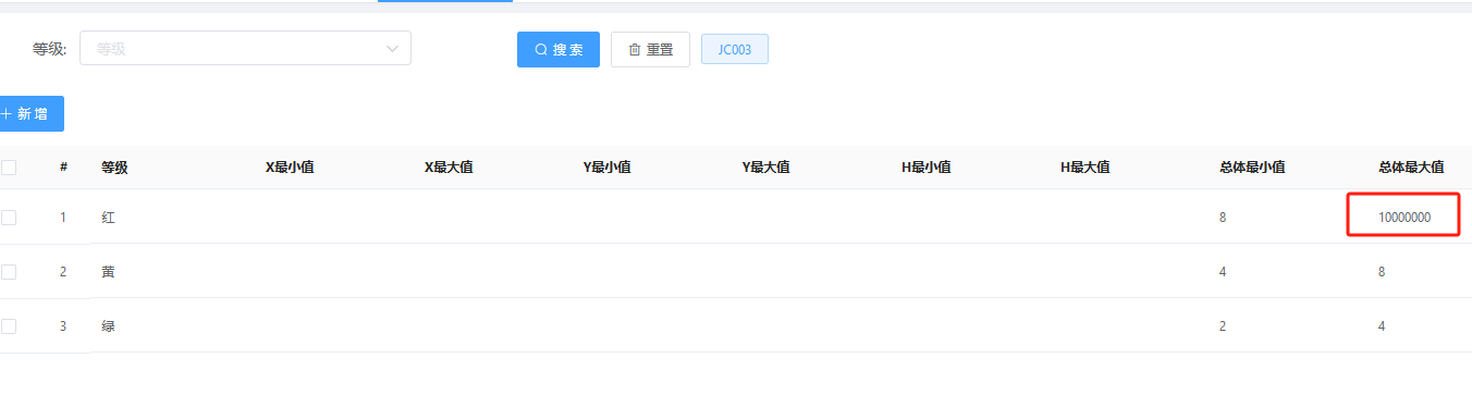 注意:红色报警的总体最大值限差,需要尽可能大的数值,入下图所示,变化量在8mm-10000000mm,将触发红色等级报警。