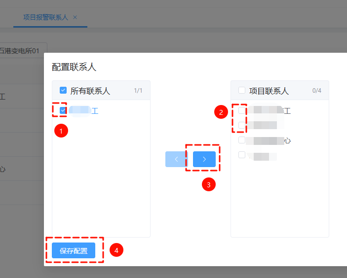 点击保存配置完成项目报警联系人配置。