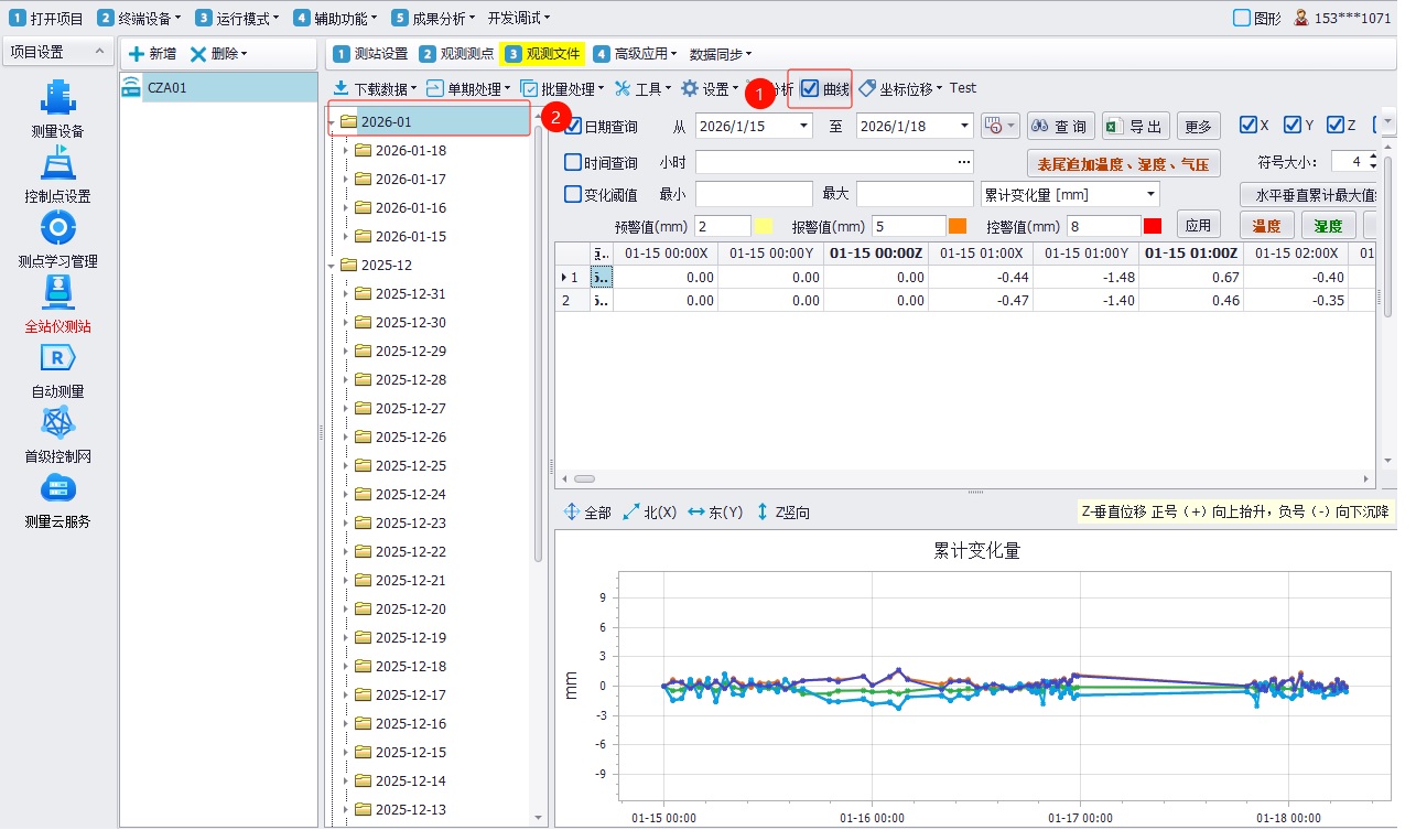 查询时间段的横向、纵向、竖向的位移变化曲线分析